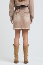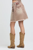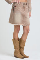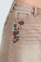 Camel Floral Embroidered Denim Skirt