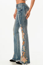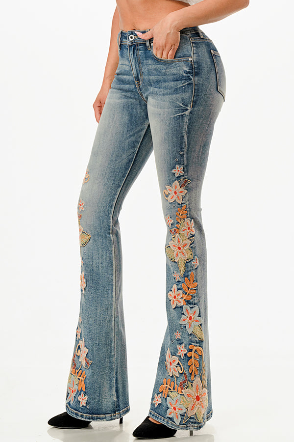Floral Colorful Embroidered Flare Jeans