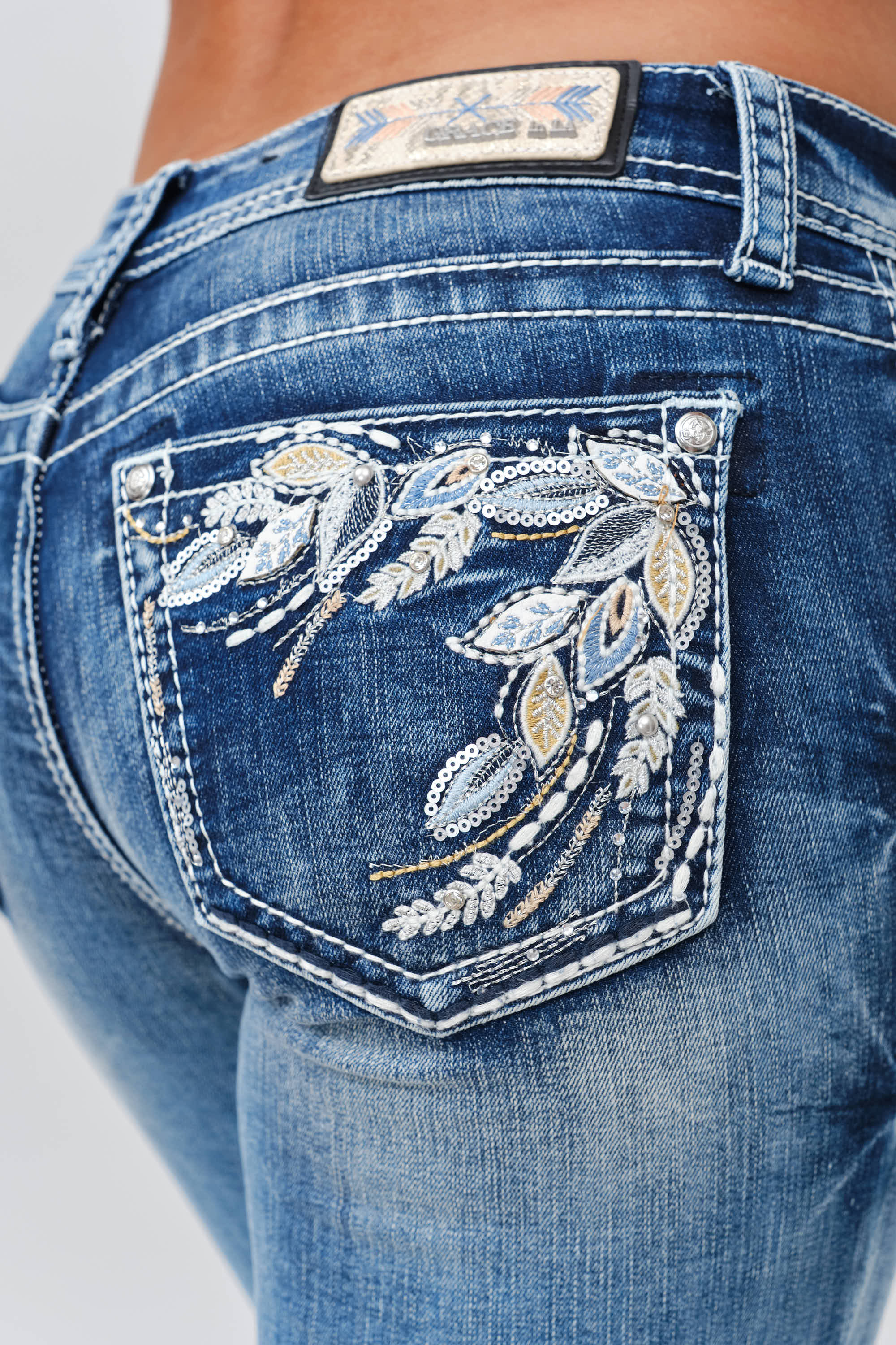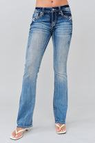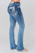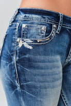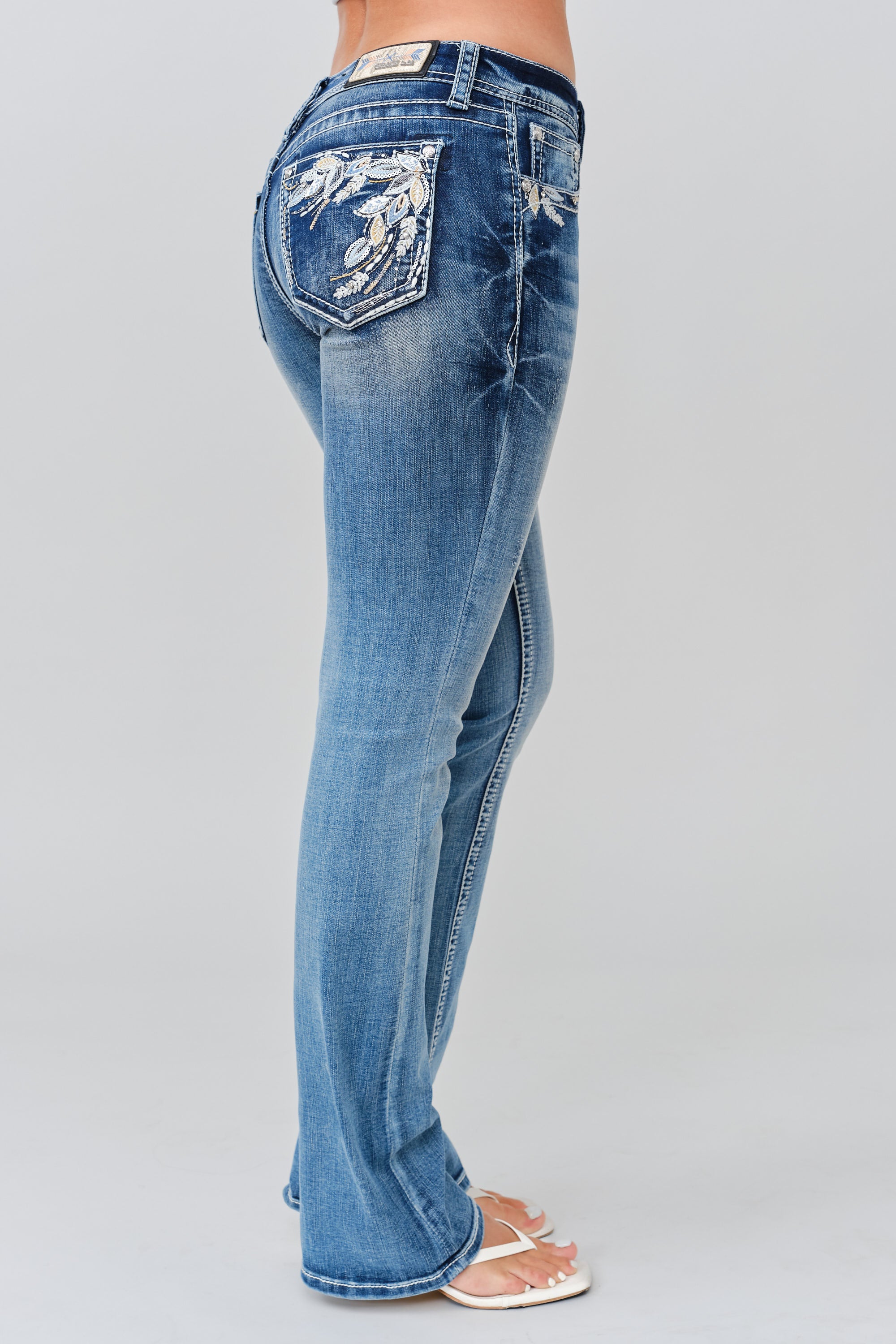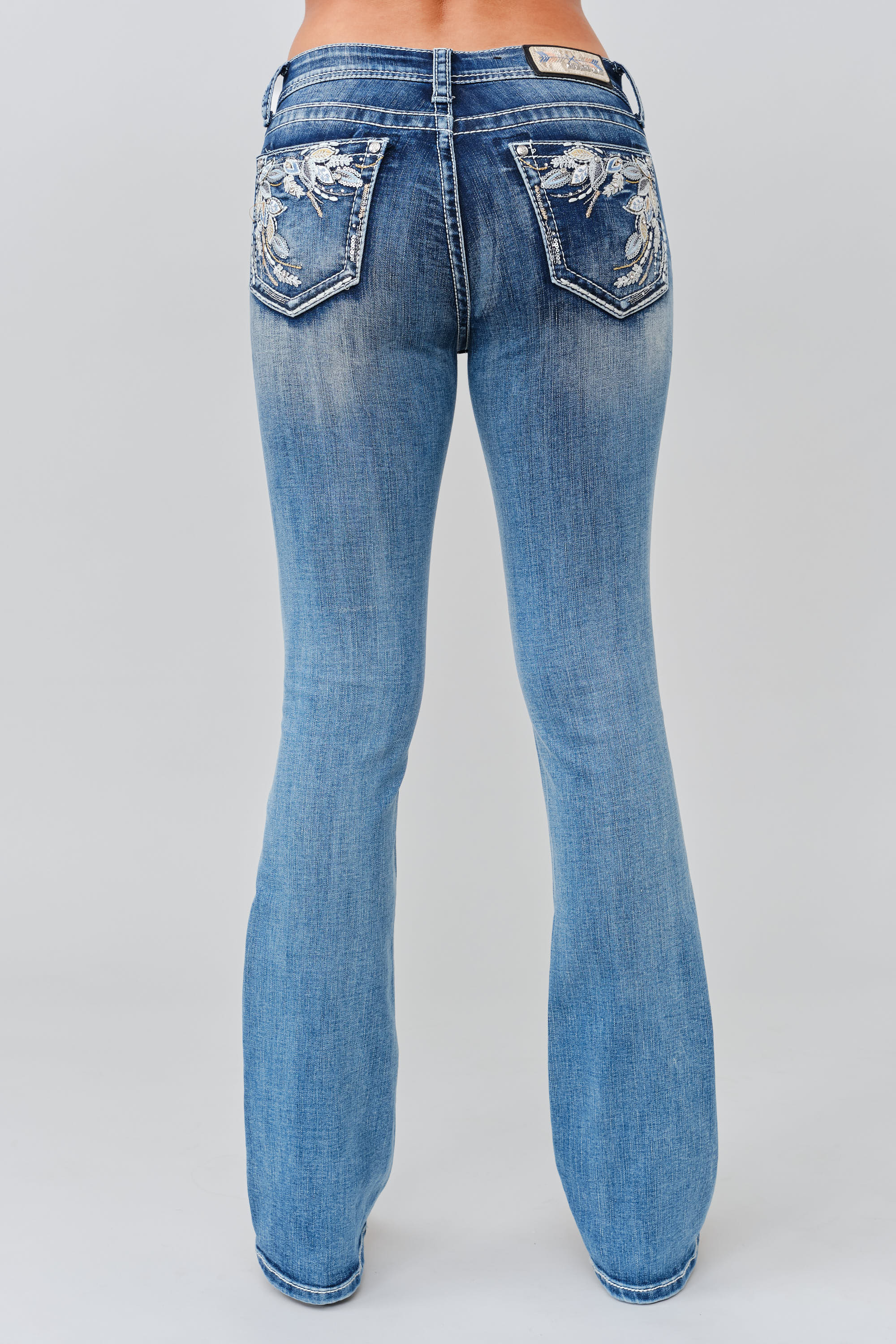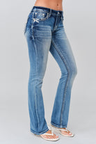 White Leaves Embroidered Mid Rise Bootcut Jeans